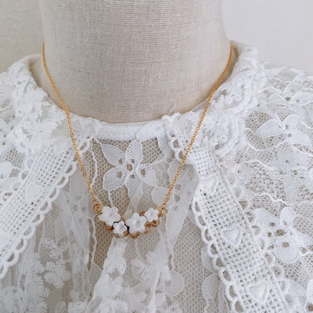 シンプルな小さな白い小花がとても可愛いネックレスです♡